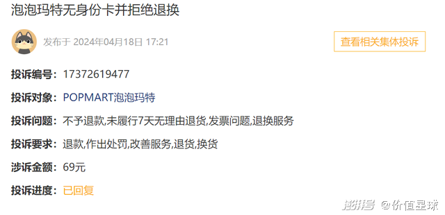 黑猫投诉上,关于泡泡玛特的投诉累计达到一万三千多条。有用户吐槽,泡泡玛特会以“快递盒并非发货时的原包装”“物流包装封条有非我司的标签,无法确认您商品寄回的真实性”等理由,进行售后拒收。